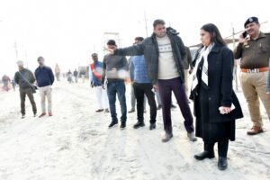 मण्डलायुक्त श्रीमती सौम्या अग्रवाल ने मेलाधिकारी श्री ऋषिराज एवं एसएसपी मेला श्री नीरज पाण्डेय के साथ गुरूवार को माघ मेला-2026 के दृष्टिगत हो रही तैयारियों का निरीक्षण कर जायजा लिया तथा सभी सम्बंधित अधिकारियों को आवश्यक दिशा-निर्देश दिए। उन्होंने सर्वप्रथम संगम नोज पर स्नानार्थिंयों के लिए बनाये जा रहे घाटों का निरीक्षण किया।